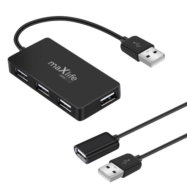 Maxlife Home Office USB 2.0 hub USB – 4x USB 0,15 m black + cable 1,5 m